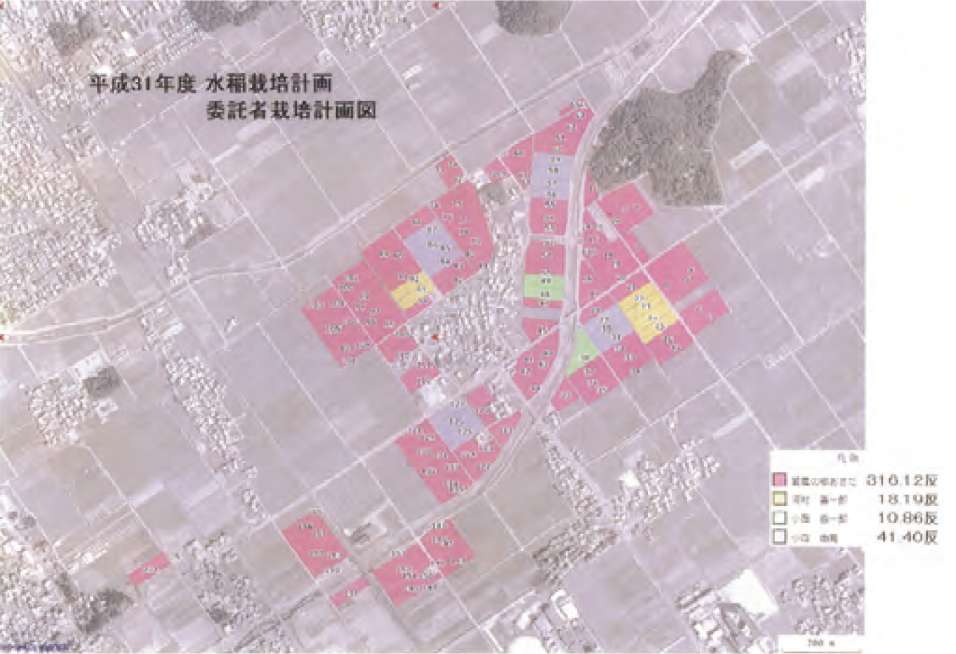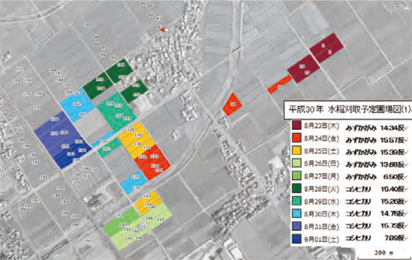 写真-4 水稲栽培作業委託者で色分け