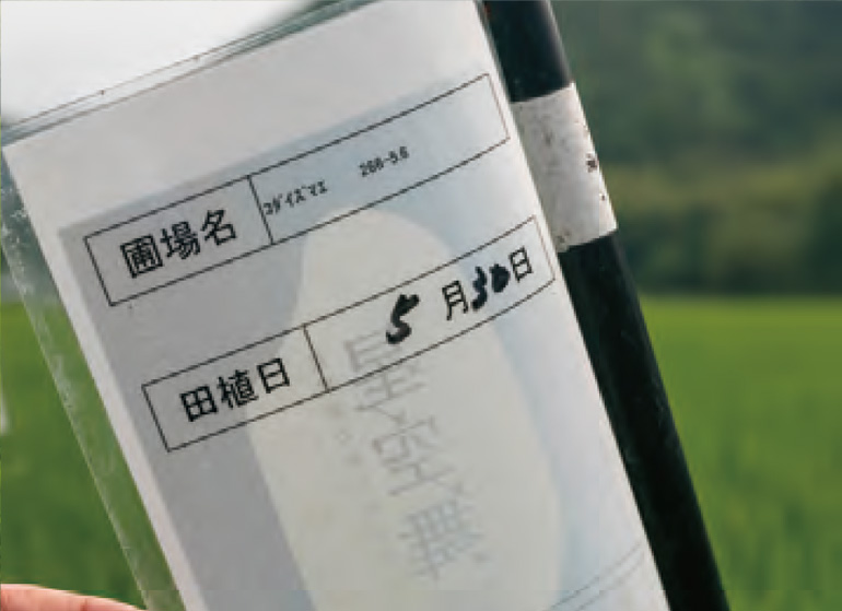 看板の裏に生産者が田植日を記入