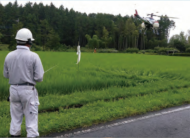 ラジコンヘリを利用した水稲の共同防除は、地域の水稲栽培を支える上で重要な役割を果たしていますが、作業が一時期に集中し、JAにとっては負担の大きい業務でもあります。日光市病害虫防除協議会は、日光営農経済センターを主体として同協議会が保有する3機、栃木スカイテック(株)が手配する県内外の応援機9機のラジコンヘリをフル活用し、毎年7月末から8月初めに約1,400ha、8月上旬に約400haの薬剤散布を行っています。オペレーターとナビゲーター、JA職員農家2名の合計5名が一組となって、散布圃場の確認やドリフトに気を遣いながら、同時に12地区で作業を進めます。例年猛暑に見舞われる時期でもあり、精神的にも肉体的にも負荷が大きい業務です。