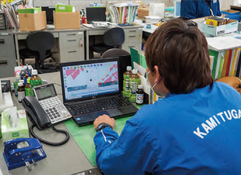 事務所のパソコンでZ-GISを操作する大貫さん
