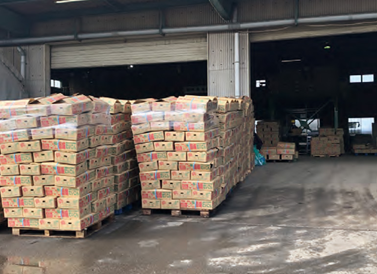 洗浄選別施設で箱詰めされ出荷を待つ大根